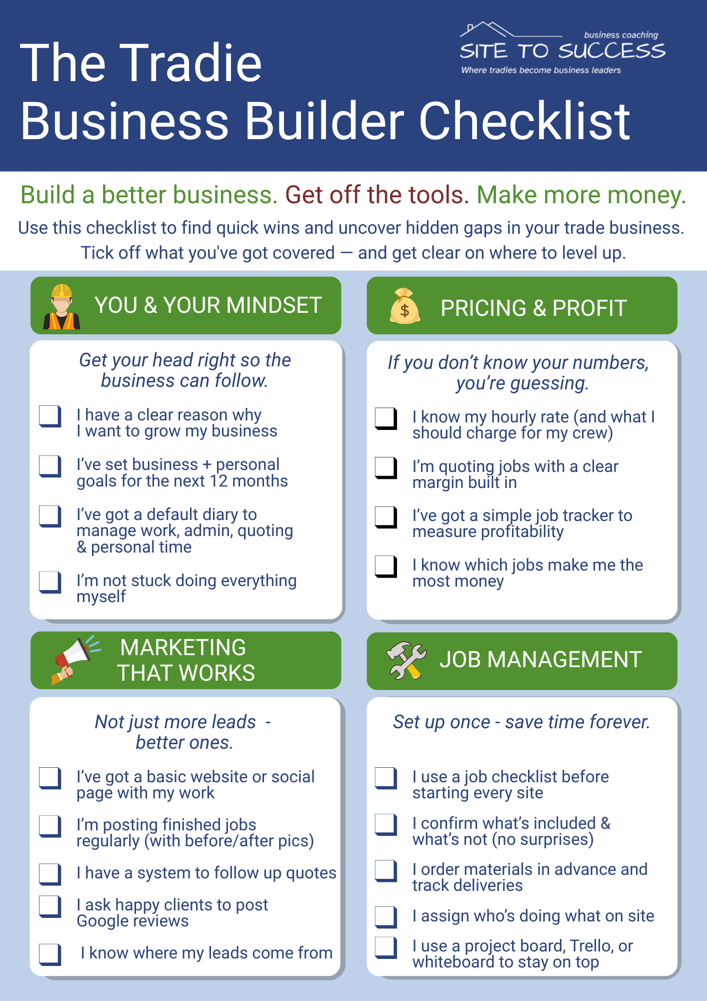 Use this free Tradie Business Builder Checklist to spot your quick wins and get clear on where to focus next.